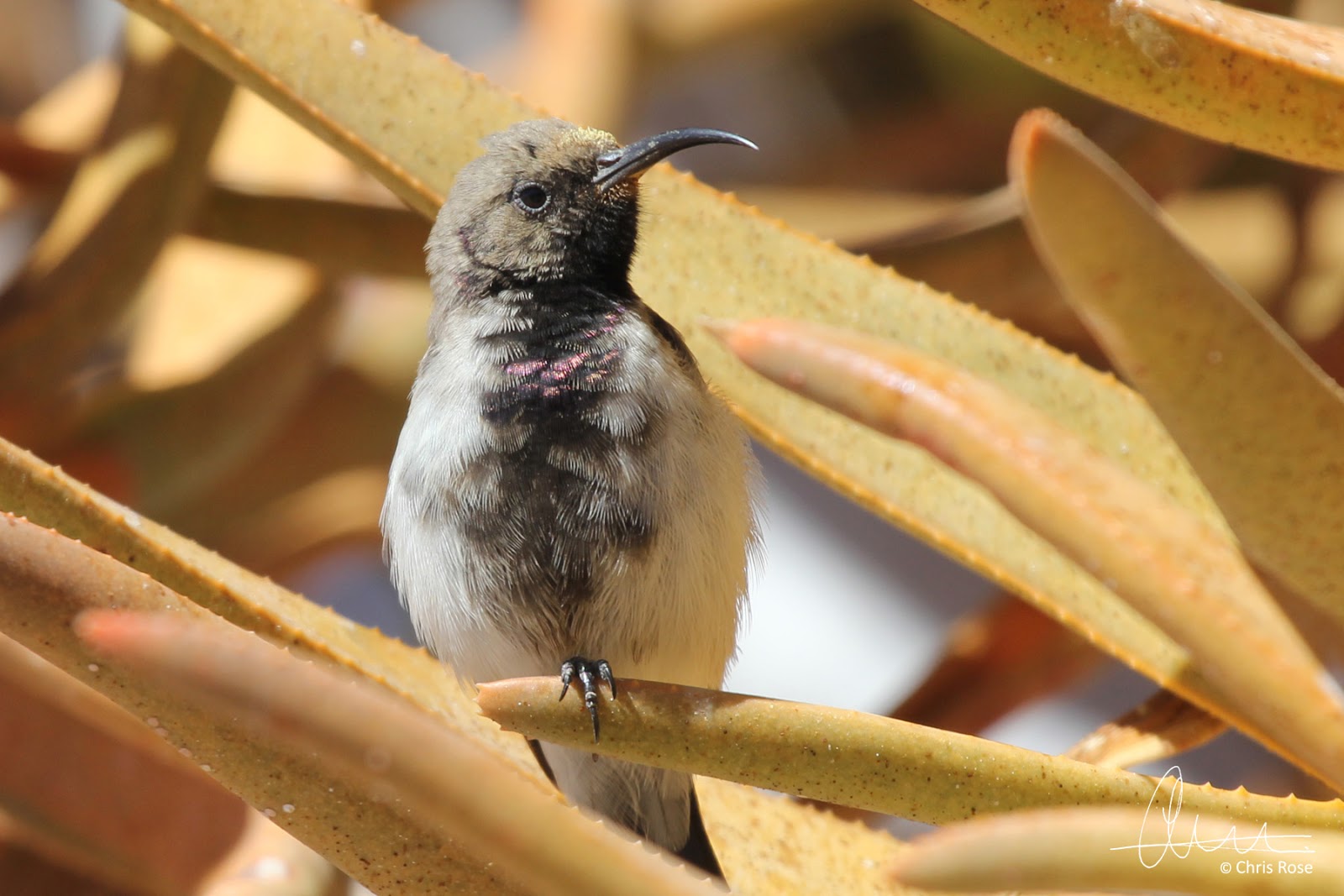 While this Dusky Sunbird was extremely vocal in the large Quiver Tree that was growing alongside the terrace we were sitting on. You can see the pink in the chest feathers on this one.