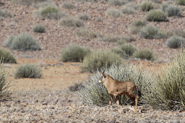 In this first part there was little game to see, Helen did find a Steenbok, but it was gone before I could raise the camera. We came across a very distant Oryx though, it looked quite strange in the heat haze.
