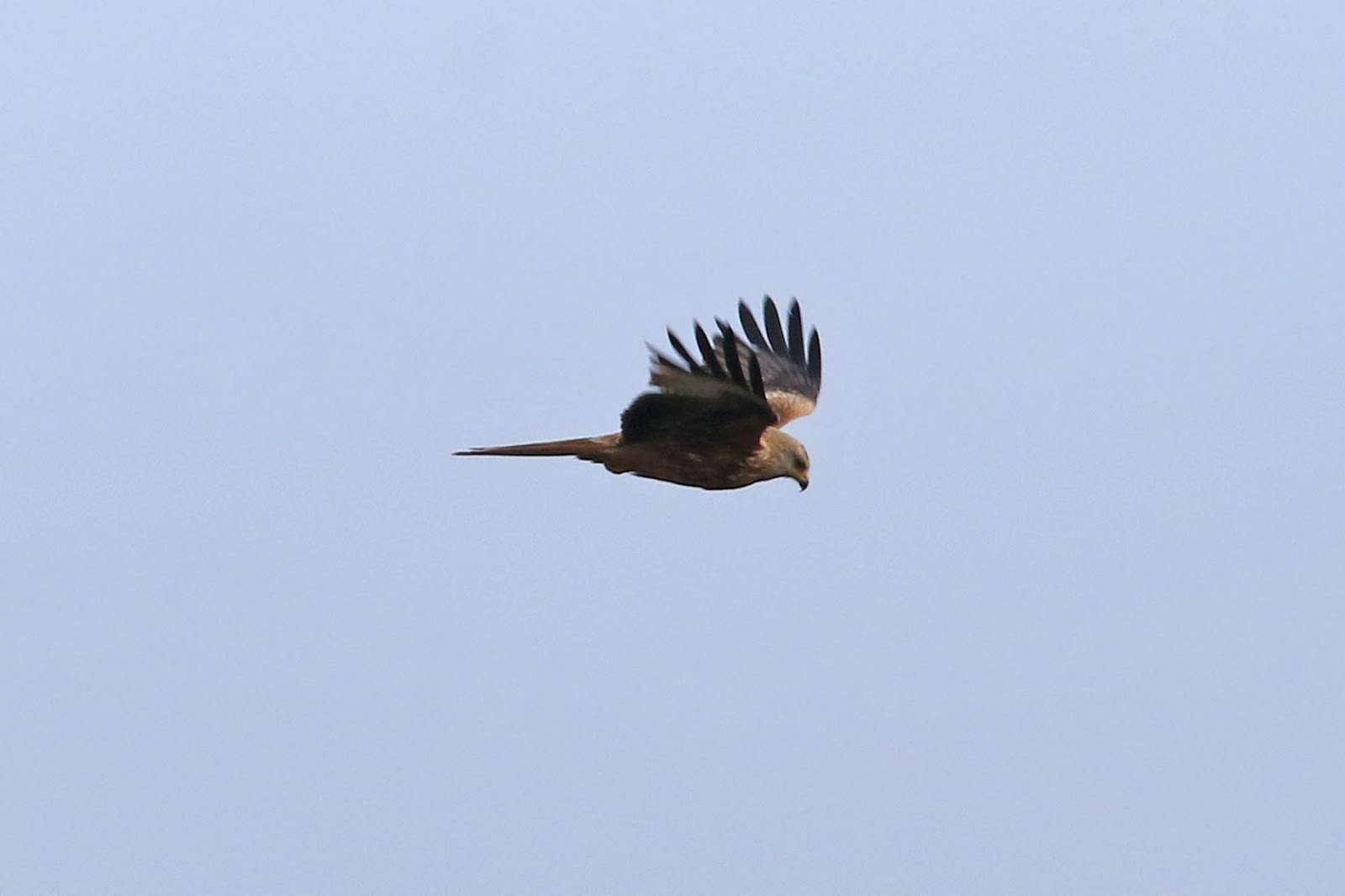 We were now being treated to a real raptor show. Red Kites were now counting into double figures, and distant birds over the top of the trees to the north took the numbers close to at least 20. These were joined by at least six of both Marsh Harrier and Buzzard, a single Kestrel could also be seen hovering over the marsh. Then Ian picked up one of the birds we were hoping for, a Ring-tail Hen Harrier. Picked out at first by its size and long tail and more rounded wings, but then identification was confirmed as it banked and showed the white rump.