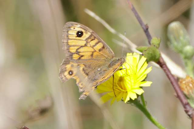 Ian and I had visited in early April, and while it was a little warmer today, the conditions were still very dry as we had experienced then. A find back in April was a couple of Wall Browns, so it was nice to find what was probably butterflies from a second brood, in almost the same place.